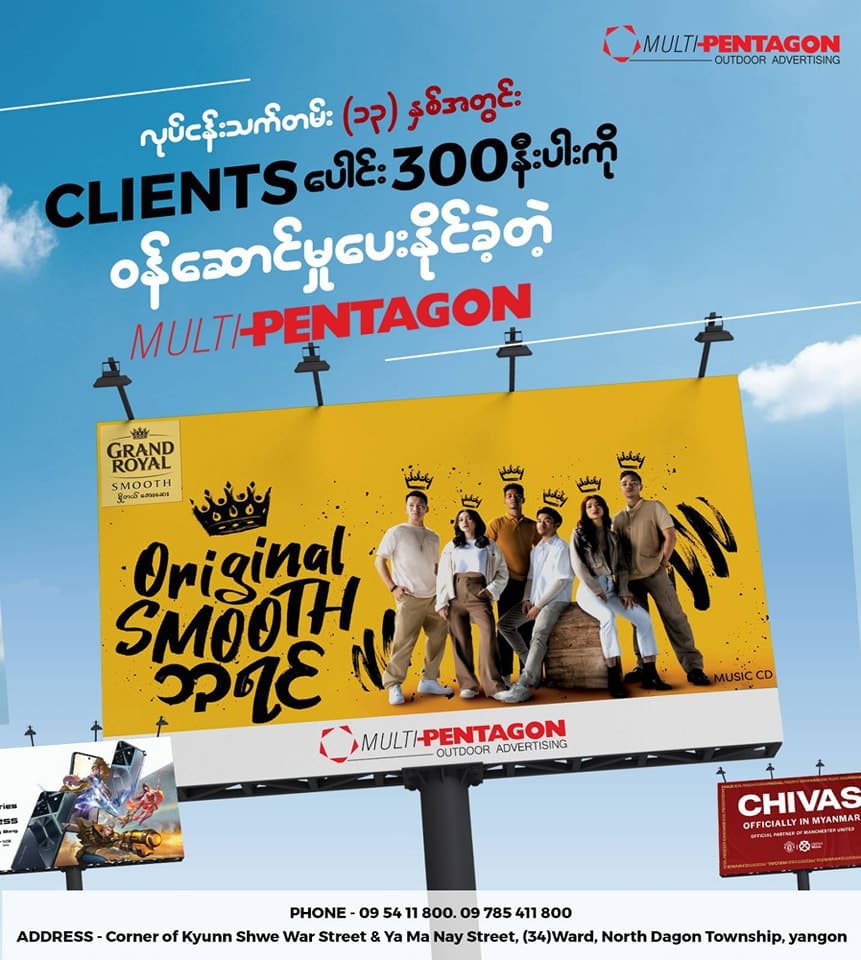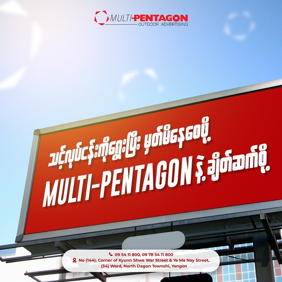 Big, bold and beautiful, billboards catch the eye and communicate your message superbly. Multi-Pentagon has over 100 sites in prime locations throughout Yangon and nationwide.