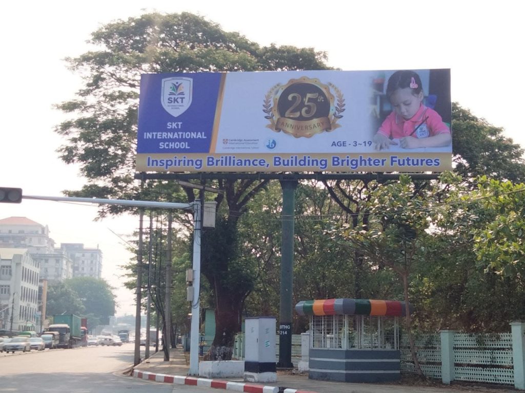 မဟာဗန္ဓုလလမ်းနှင့် ဗိုလ်တထောင်စျေးလမ်းထောင့် ရှိ အချက်အချာကျသော နေရာတွင် SKT International School ၏ Billboard . . .